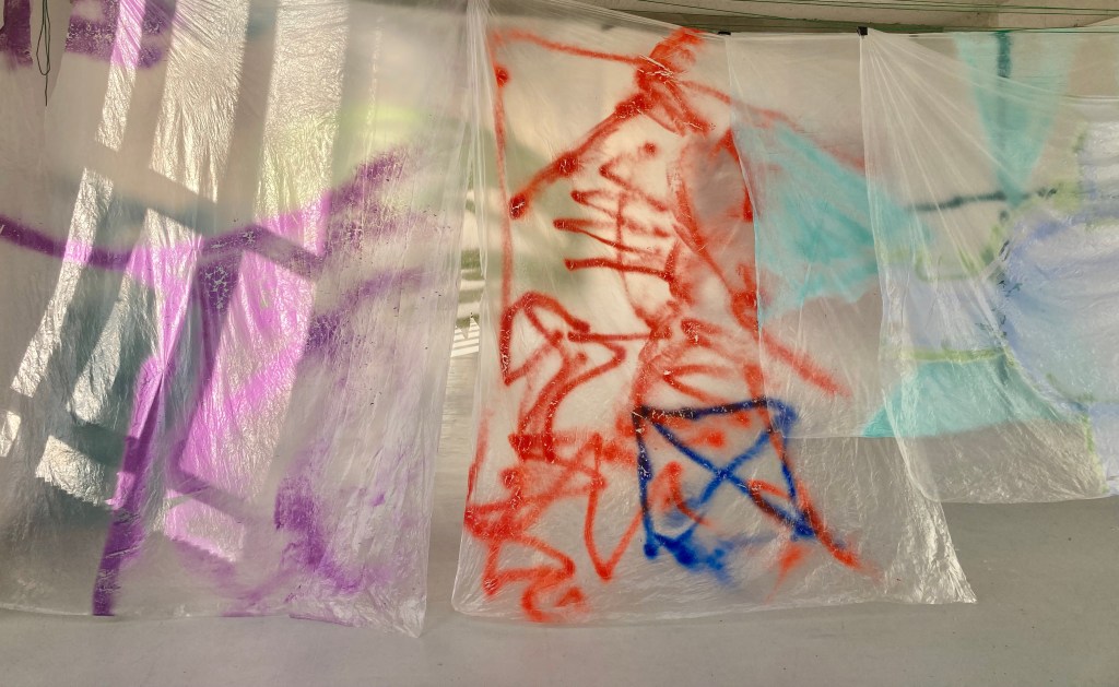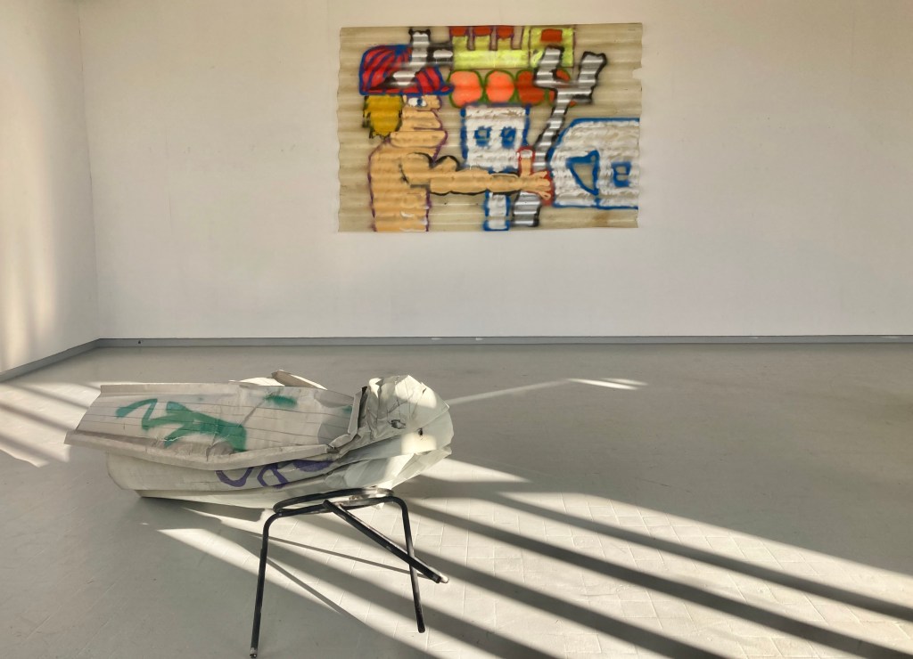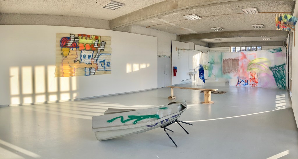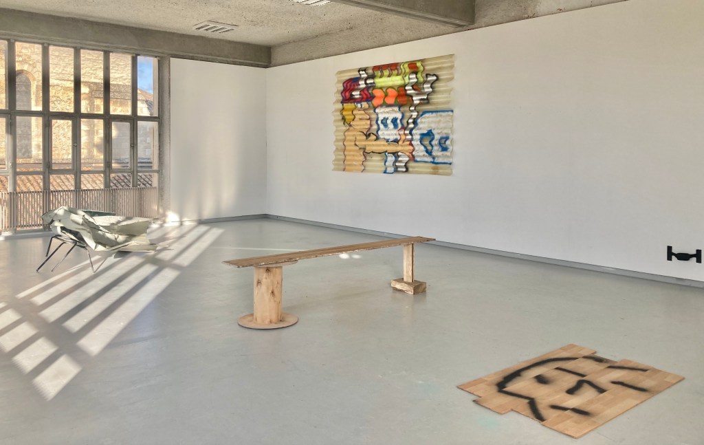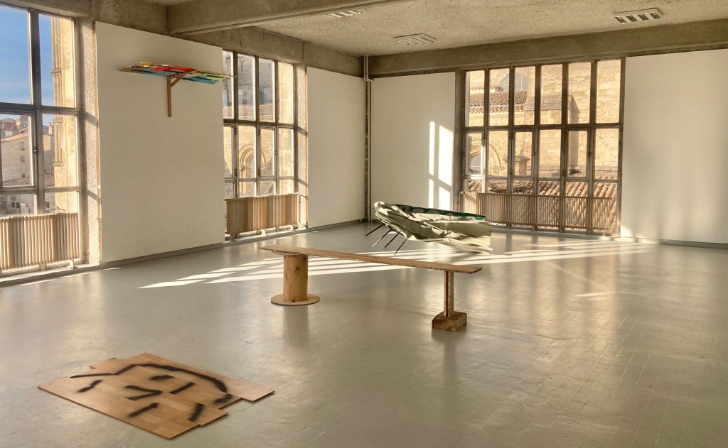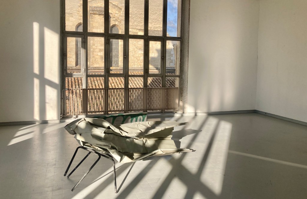 "période apocalyptique, le chantier de démolition, passé-futur-nouveau. rien ne me fait penser à ça quand je traverse ces lieux pour m'y balader, peindre ou juste rêvasser. ces lieux en marge, un peu vivant-mort-vivant, sont chaleureux le dimanche au soleil lorsque les mouvements de grues et tractopelle se taisent. les espaces sont mystiques, immenses, on visite et on s'y voit vivre. l'apocalypse vient après quand les colonnes de béton brut se dressent. repenses aux vieilles pierres, le potager, les arbres et la vie saine. la zone se déporte. la seule petite lutte : fréquenter, créer, s'amuser jusqu'à la première paroi sortie du sol.les pièces récupérés pas à jeter, j'en fait mon salon tout prés"