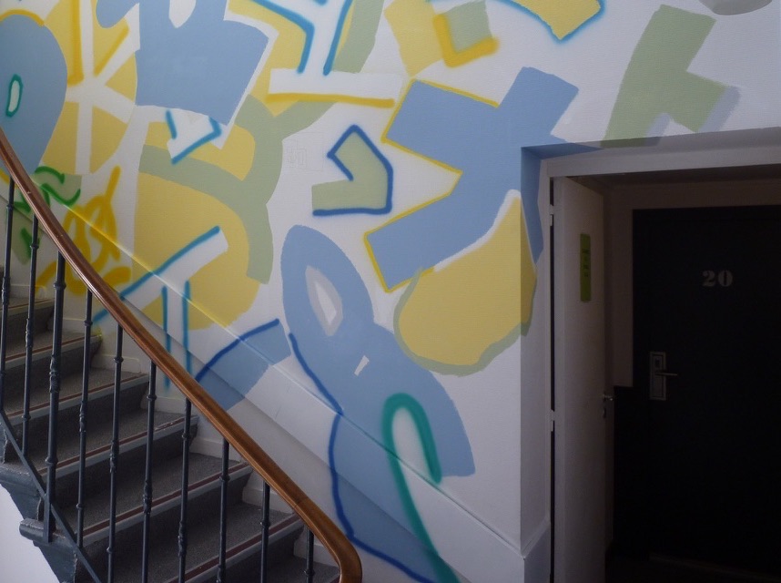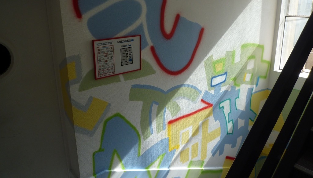 hotel taggat peinture réalisée dans les escaliers de l'hôtel Taggat à Lyon 2019 https://www.taggat.fr spectr