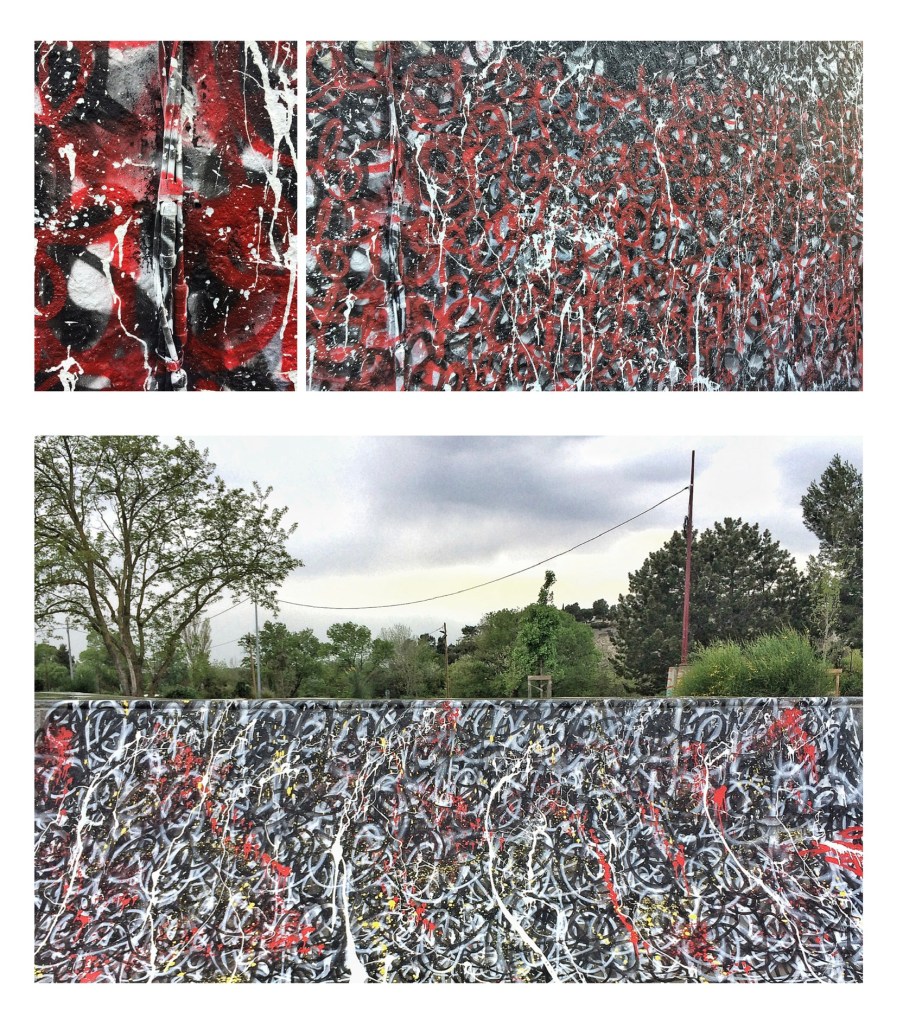 A la manière d’un sismographe, je capte tout ce qui m’entoure. La moindre vibration est retranscrite sur la toile même si ma façon de peindre à l’instinct me donne toute liberté. Graffiti-starter, quand collé à la fenêtre à l’arrière de la voiture de mes parents sur les périphériques, les graffitis se succédaient et me subjuguaient. Un cordon de couleur défilait sous mes yeux et s’imprimait sur mes cartes mémoire. Une bombe de peinture dans le garage allait me donner l’occasion de participer à cette expression artistique, c’était il y a 5 ans, une éternité, je vivais en bord de mer et rien de cela n’existait ici. La puissance de la bombe et son impact sur l’environnement m’ont fasciné, skateparks et lieux abandonnés sont devenus des supports de création, la rue aussi. Laisser une trace urbaine ici et là m’a rappelé la jouissance éprouvée quand on signe une pente en ski freeride. Open-eyes, oui, se démarquer de tout ce qui se pratiquait s’imposait. Lettrages, outlines et fonds de mes premières découvertes existaient déjà et bien souvent en mieux. Il fallait donc reprendre les bases du graffiti bien sûr, mais oser sortir des sentiers battus, explorer un mode d’expression plus expressif et plus personnel. Jouer avec les couleurs et les coulures, perfectionner son tag, assurer son flop et revendiquer le style ignorant était une évidence et une source de plaisir intense. Du mur à la toile, en m’installant à Lyon. Curieux d’explorer ce support, attiré à l’idée de pouvoir travailler à durée illimitée, atteindre la complète satisfaction de la composition et aller jusqu’au bout de la représentation, le tout avec confort et intimité, la toile exerçait bien son pouvoir de séduction. Elle me fascine à présent. Alors, jusqu’où ? Petites choses de la vie quotidienne ou grands mystères tout peut être inspiration. Dans la pratique de l’escalade, du ski, du skate, du vélo ou du surf, la ligne m’intéresse, l’extrême m’attire. Sur un mur ou une toile c’est aussi toujours de manière engagée et sans limites. Ma peinture est intense, elle me transporte très loin dans mes idées et dans la représentation du monde qui m’entoure. Je sais maintenant que je ne vivrai pas sans elle, c’est ma compagne, mon oxygène, ma vie et ma liberté. GOKO Faire évoluer ma peinture, la faire connaître, l’enrichir des autres. Accepter cette passion la faire vivre et en vivre, un défi, un challenge ici et maintenant.