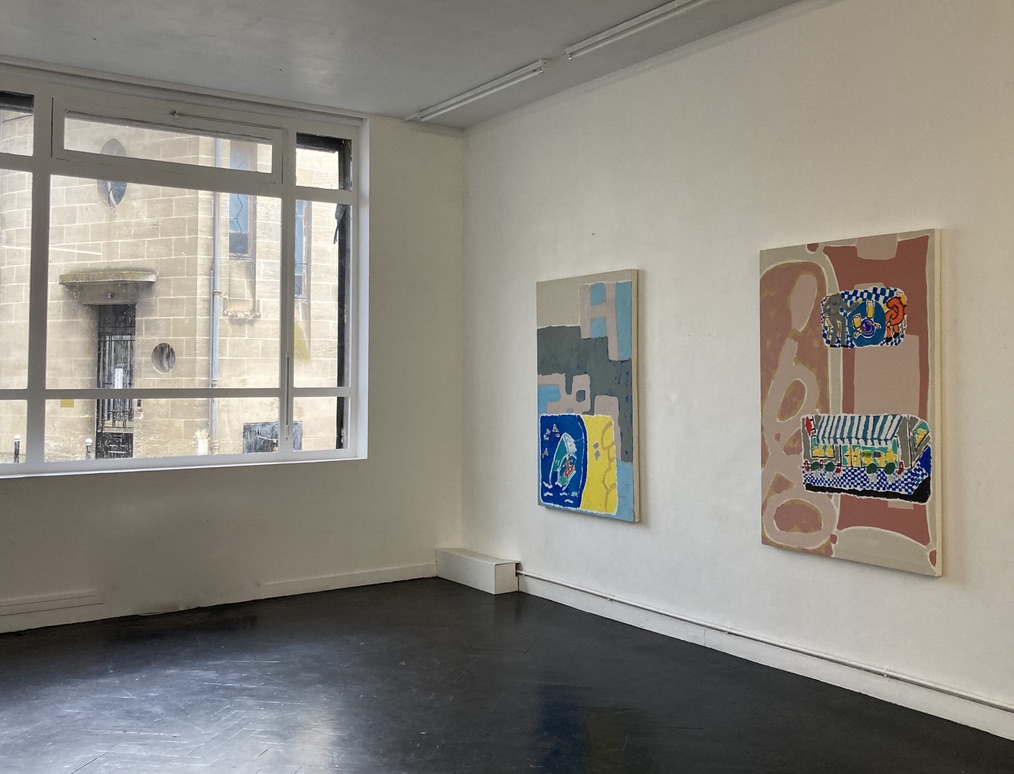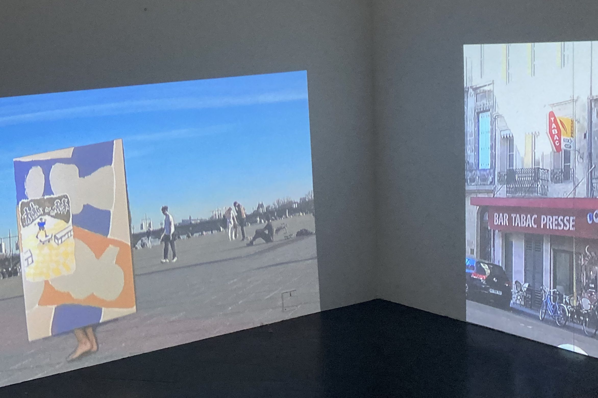 chacune des toiles est accompagnée d'un vidéo-montage diffusé sur écran télévision ou projecteur vidéo.