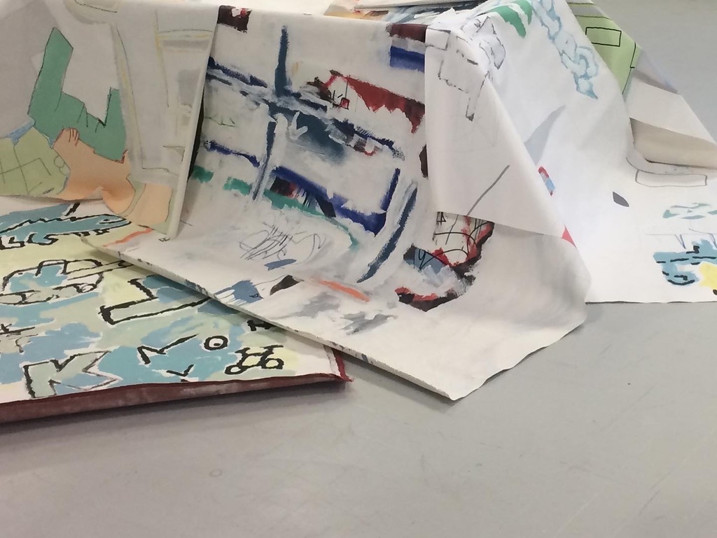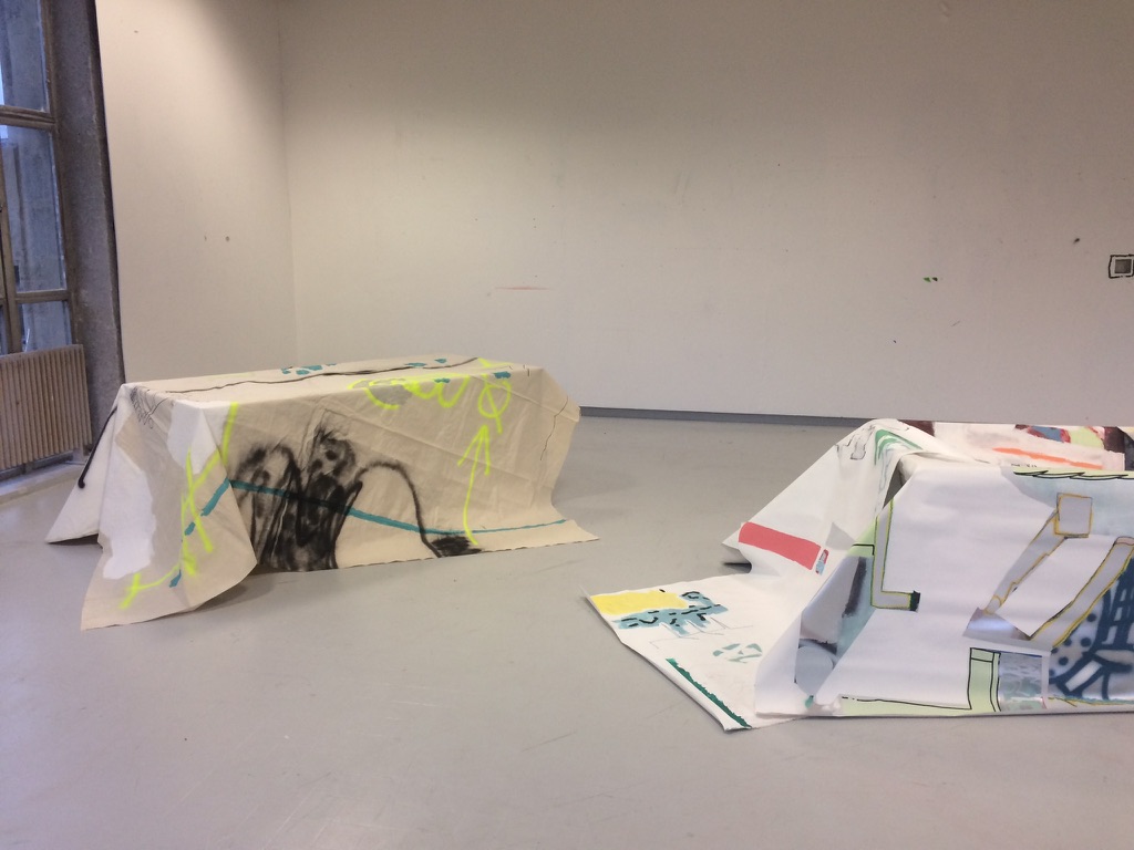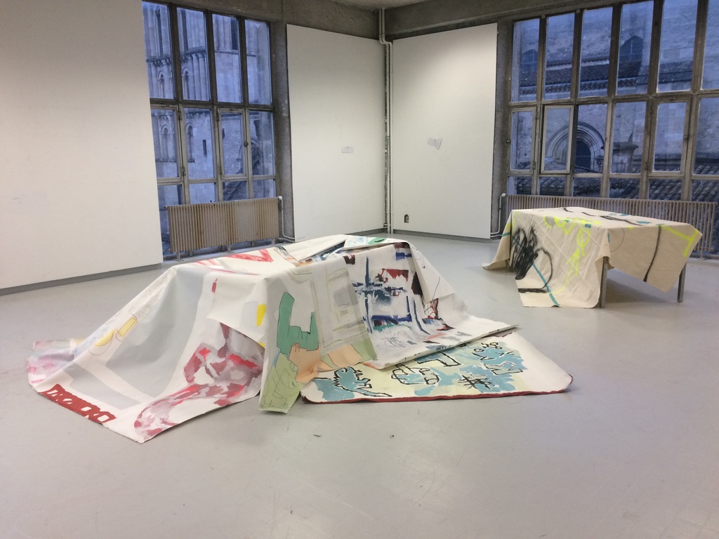 tablées d'inondations recherche aux beaux-arts de Bordeaux. mise en volume d'une série de toiles produites en 2020.